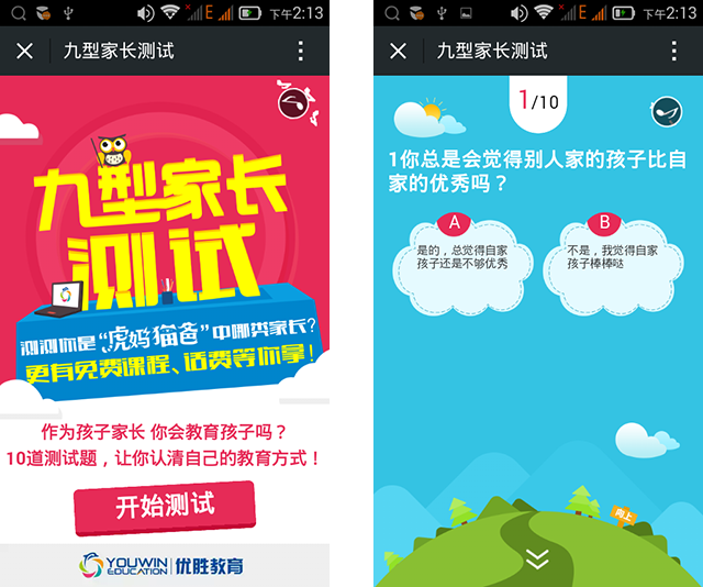 北京恒泰博远完成优胜教育项目,九型家长大测试该项目在六一儿童节上线,项目主要是针对家长面对孩子的九种情况而进行的测试,看看自己属于那种家长,根据答案情况,会获得相应的话费大奖。