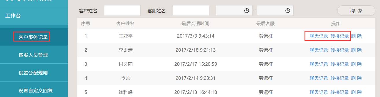 1.有新会话接入后,客服点击“客服转接”按钮实现会话转移
