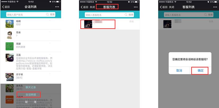 客服小助手→会话→点击想转接的客户→转接→选择在线的其他客服→发起转接