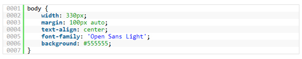 对于我们的CSS,首先让我们定义的车身尺寸,然后将添加一些关于它的详细信息,如颜色,字体大小和字体面。
