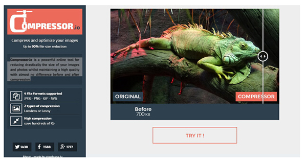 Compressor.io是大大减少你的图像和照片的大小,同时保持高品质,几乎没有区别前后压缩一个强大的在线工具。