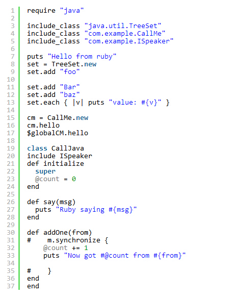 JRuby是面向Ruby、基于Java虚拟机(JVM)的一种解释程序,它结合了Ruby语言的简易性和功能强大的JVM的执行机制,包括与 Java库 全面集成。Rails彻底加快及简化了Web应用的开发,不过它让人觉得不够成熟,特别是在高端企业级功能方面。另一方面,Java平台及其虚拟机、库和 应用服务器的速度、稳定性和功能方面却一直在提升,现在已被公认为是开发高端服务器应用的领先平台。不过如果Java平台不与Ruby等新兴语言联系在一 起,就有可能落后于流行趋势。