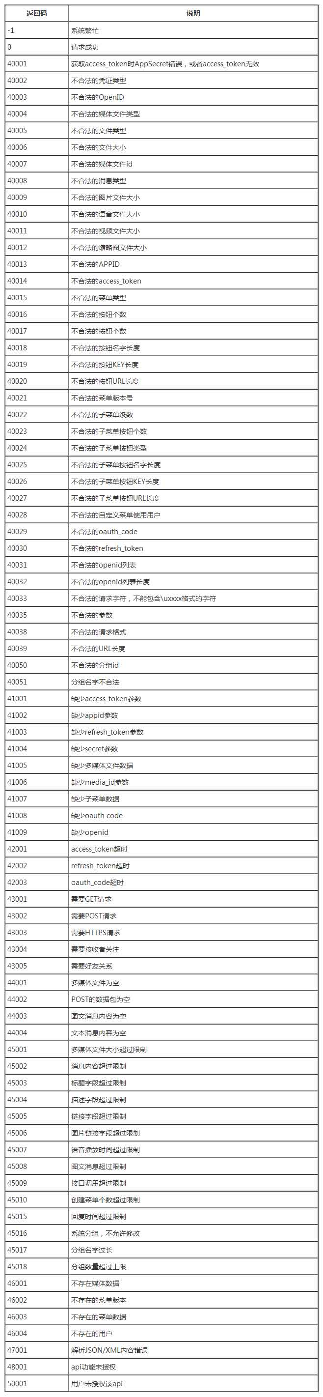 公众号每次调用接口时,可能获得正确或错误的返回码,开发者可以根据返回码信息调试接口,排查错误。