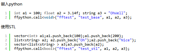 ffpython 是轻量级的,只有一个头文件,并且增加了一个方便阅读的版本,可以供想要嵌入python的开发者参考。