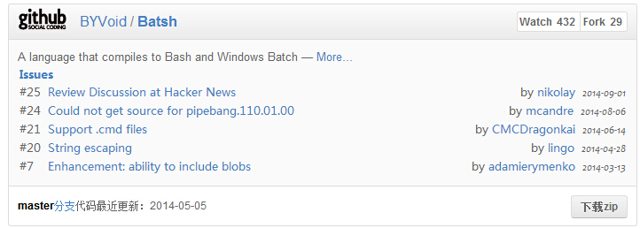 下载地址:https://codeload.github.com/BYVoid/Batsh/legacy.zip/master