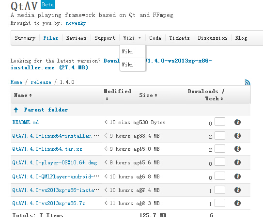 下载:https://sourceforge.net/projects/qtav/files/release/1.4.0/