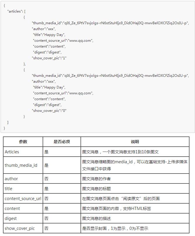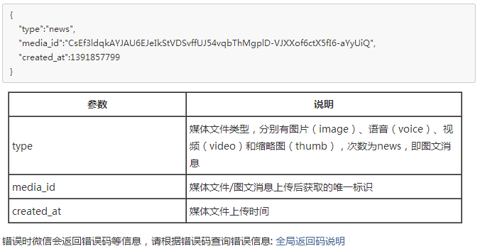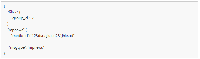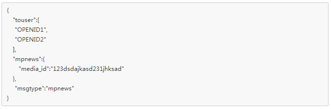 图文消息(注意图文消息的media_id需要通过上述方法来得到):