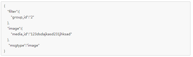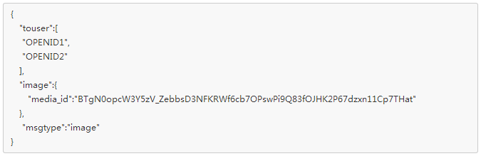 图片(注意此处media_id需通过基础支持中的上传下载多媒体文件来得到):