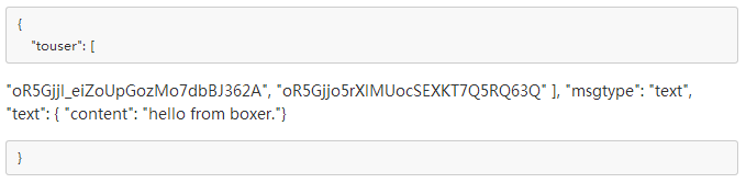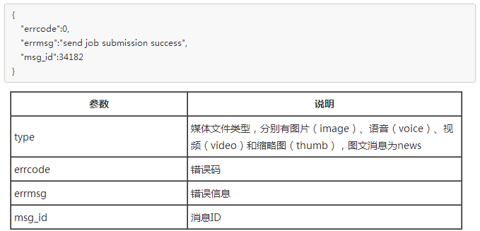 然后,POST下述数据(将media_id改为上一步中得到的media_id),即可进行发送