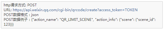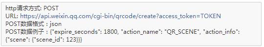 每次创建二维码ticket需要提供一个开发者自行设定的参数(scene_id),分别介绍临时二维码和永久二维码的创建二维码ticket过程。