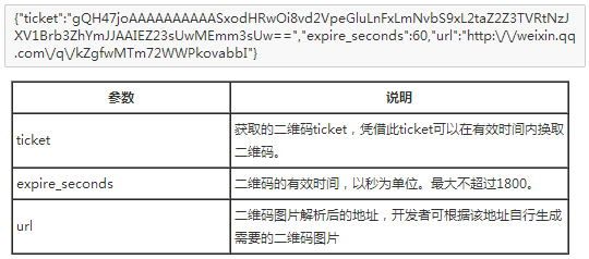 http://mp.weixin.qq.com/debug/cgi-bin/apiinfo?t=index&type=%E6%8E%A8%E5%B9%BF%E6%94%AF%E6%8C%81&form=%E5%88%9B%E5%BB%BA%E4%BA%8C%E7%BB%B4%E7%A0%81ticket%E6%8E%A5%E5%8F%A3%20/qrcode/get