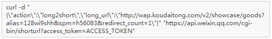 主要使用场景: 开发者用于生成二维码的原链接(商品、支付二维码等)太长导致扫码速度和成功率下降,将原长链接通过此接口转成短链接再生成二维码将大大提升扫码速度和成功率。