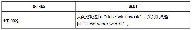 主要使用场景: 微信用户在企业号会话中点击外链到达企业号的网页,在用户完成操作后,企业号(网页方)可调用此接口关闭当前网页窗口,使用户返回会话。