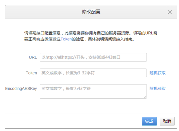 当你开启应用的回调模式时,企业号会要求你填写应用的URL、Token、EncodingAESKey三个参数。