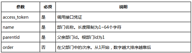 https://qyapi.weixin.qq.com/cgi-bin/department/create?access_token=ACCESS_TOKEN