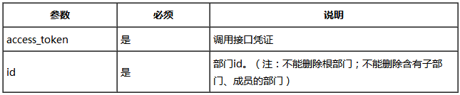 https://qyapi.weixin.qq.com/cgi-bin/department/delete?access_token=ACCESS_TOKEN&id=2