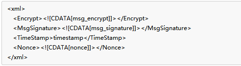 企业响应的消息同样应该经过加密,并带上msg_signature、timestamp、nonce及密文,其中timestamp、nonce由企业指定,msg_signature、密文经特定算法生成,具体算法参见附录。