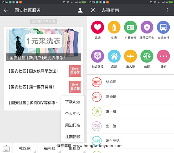 一、社区家:5.18专题、品牌介绍、每天聚焦、办事办证