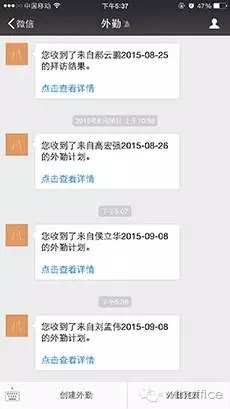 点击外勤列表会看到有“创建的外勤”和“收到的外勤”。