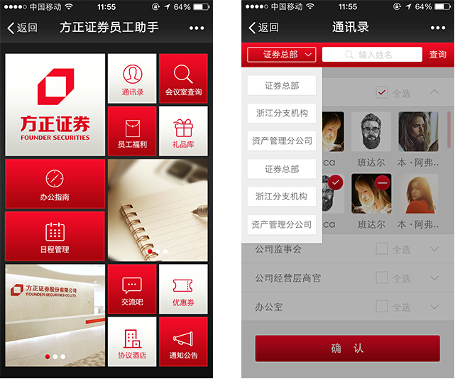 2、会议查询:不同分部会议、时间和日期、会议室明细内容。
