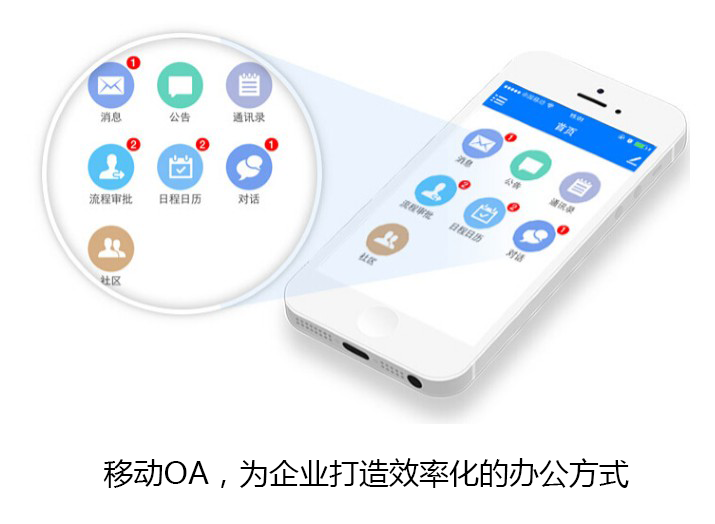 移动OA开发,是企业、或其它行业,通过第三方平台开发商,定制开发移动化的办公OA,使其能为企业提供简单、便捷、速度、智能的操作和数据处理,完成企业的日常办公工作。