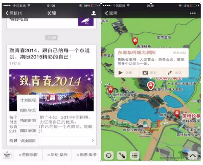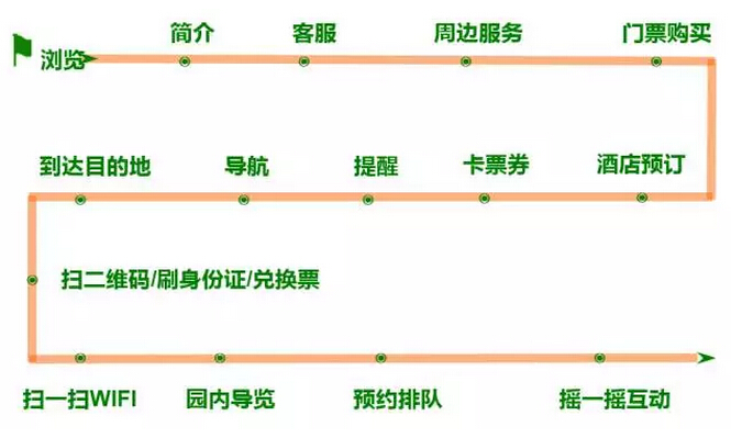 游客通过手机端关注公众账号,扫一扫摇一摇等增强游玩时与商家互动体验,购票抽奖等流程更加方便快捷。