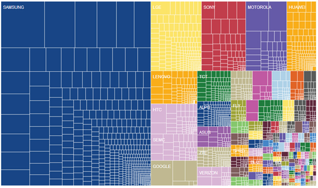 尽管有人预测中国手机将会智能手机的最大赢家,但目前三星仍维持着霸主地位,占据了 43% 的份额,13 大流行机型中有 12 款都是三星的。不过这个数字要比去年的 47.5 略低了。占比较高的中国品牌包括华为、联想、中兴、小米、OPPO 等。