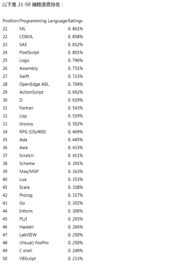 必须声明,这个榜单本身采集的是英文世界的数据,虽然在反映趋势上有一些参考意义,但与中国的实际情况不完全符合,而且,这张采样本身也有相当大的局限性。